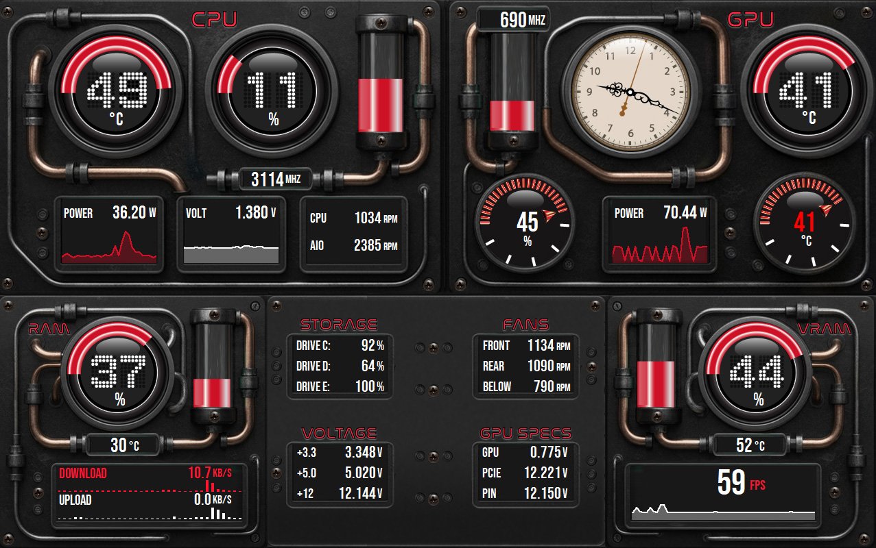 Step Into the Industrial Era with “Steamborne Bronzium - G6 [Red]”! Size: 1280x800 Need a custom fit? Your panel, your way - tailored dimensions on request: 3840x1100 | 1024x768 | 1920x720 | 1920x1080 & more! Precision > Perfected: Temperature: CPU · GPU: 100 States Utilization: CPU · RAM · VRAM: 100 States Clock: CPU · GPU: 100 States HotSpot/Utilization: GPU: 50 States Hour Hand Artistry: Day(AM): 360 images Night(PM): 360 images A total of 720 frames - moving every 60 seconds for flawless, real-time harmony. Note: Requires AIDA64 v7.70.7500 or Beta v7.99.7829 or above. Please click here to send me a PM to claim your exclusive Sensor Panel. Forge Tomorrow - A seamless fusion where craftsmanship meets pure performance. Explore more on my webpage: Surjeet Skins Beyond Data - More than Metrics.