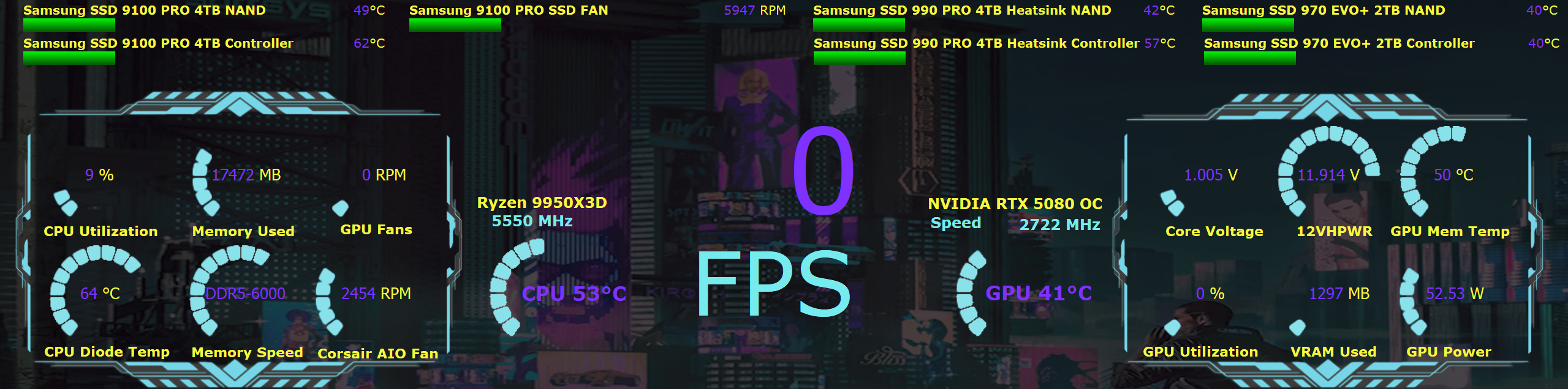 Request - does anyone have anything for a 980x440 resolution screen? Using an old phone. Would like CPU Package Temp, GPU Temp, CPU Utilization, GPU Utilization at the least, then maybe CPU and GPU clock and other similar monitors. Something similar to these, that actually fit