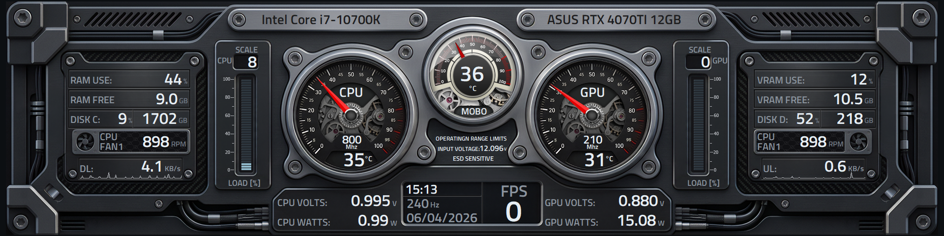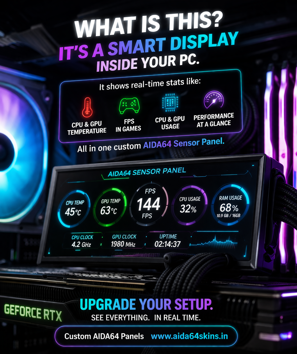 Step Into the Rusted Future with “Rusty Cyberis | D6” Size: 1920x480 Need a custom fit? Your panel, your way - tailored dimensions on request: 3840x1100 | 1280x800 | 1024x768 | 1920x720 | 1920x1080 & more! Precision > Futuristic: Temperature: CPU · GPU: 100 States Utilization: CPU · GPU · RAM · VRAM: 100 States Hour Hand Artistry: Day(AM): 360 images Night(PM): 360 images A total of 720 frames - moving every 60 seconds for flawless, real-time harmony. Note: Requires AIDA64 v7.70.7500 or Beta v7.99.7829 or above. Please click here to send me a PM to claim your exclusive Sensor Panel. Discover the full experience - A seamless fusion where craftsmanship meets pure performance. Explore more on my webpage: Surjeet Skins From Reading Data to Feeling the Machine.