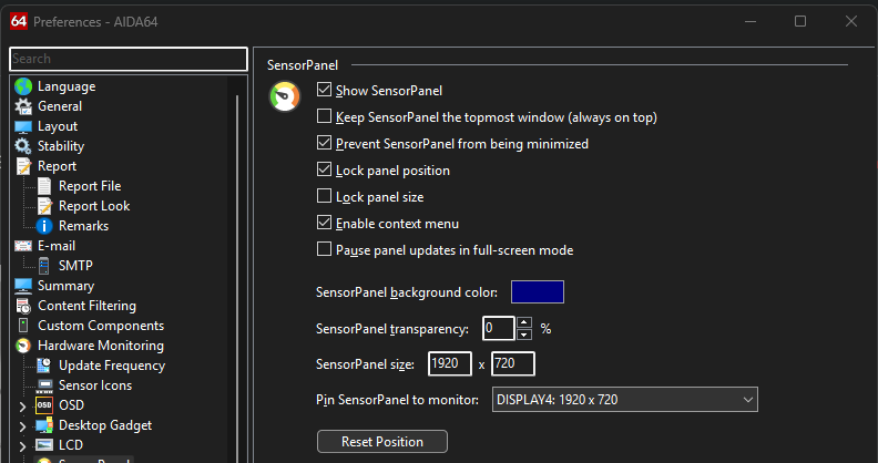 I have three monitors, along with a small LED monitor specifically for SensorPanel. It's a Wiseco, 1920x720 display. This previously was not a problem and then possibly after one of the updates, no matter what settings I choose, it still ends up on my primary display.