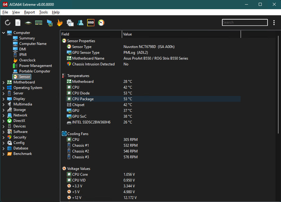 Chipset temp now available in 6.32 Thanks "Physical drives" does not show a serial number (or other unique identifier). So no idea which drive its related to. You tell me whether you can figure out which of the two Samsung SSD 860 EVO 2TB is connected to which partition. I only have the serial number as a starting point since thats the only unique value in the sensor items list (see the last screenshot) Storage / Physical Drives Storage / ATA Sensor items list