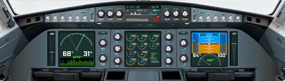 Tighten Your Seatbelts Again With "The Real Cockpit - 737"! A real Boeing 737 Cockpit-inspired masterpiece that doesn’t just monitor - it resonates with your system’s pulse. Size: 3840x1100 (Created as per one user's special theme request!) Need a custom fit? No limits here! custom resolutions on request can be tries: 1920x480 | 1280x800 | 1024x768 | 1920x720 | 1920x1080 & more! Precision > Taken Flight: Temperature: CPU | GPU: 100 States Utilization: CPU | GPU | RAM | VRAM: 100 States Please click here to send me a PM to claim your exclusive Sensor Panel. Step Into Tomorrow - Not just monitoring, it’s not just numbers - it’s your system’s heartbeat in motion. Explore more on my webpage: Surjeet Skins Performance. Perfected. Mastery Defined.