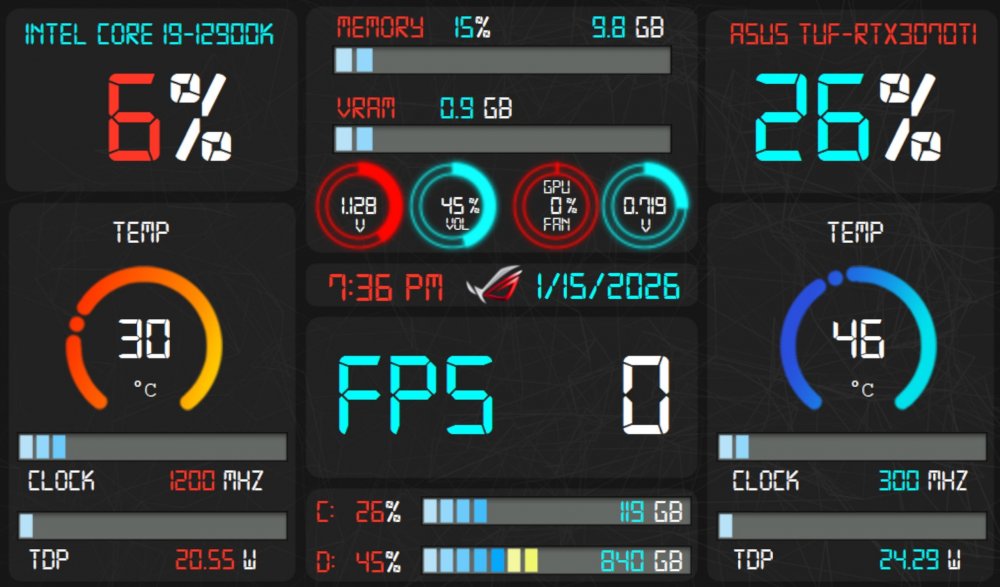 This is the sample SensorPanel used in AIDA64 2.50 what's new page. This utilizes the new gauges and graphs.