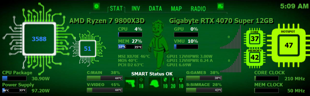 KelloxXs Posted December 30, 2025 Posted December 30, 2025 On 8/8/2025 at 12:43 AM, TunkeTunk said: After a lot of work, font replacements, what to display and now flipping it from Vertical to Horizontal. I'm done for a while. Created this to match the Walnut on my Antec Flux Pro. Now I'm just gonna enjoy watching it, until I get tired of it and create a new one. 1920x480 on a 8.8" inch display mounted inside the case. Can you share this in 1280x400? without Mobo, CPU Pic and MSi Logo? Thanks bro Quote