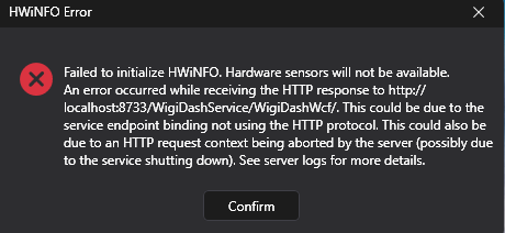 M0USER Posted October 15 Posted October 15 I am getting this error suddenly with my WigiDash, it just started today with no changes to my system. To try to fix it I rolled back windows a few days (and it worked for a minute), I uninstalled Aida64, I uninstalled WigiDash Manager, I tried different USB ports, I updated my BIOS, I uninstalled other software that could have been conflicting with it (HWinfo), and nothing has worked so far. Please advise. Quote
